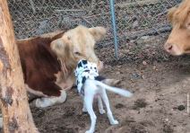 Obukli ga u kostim teleta, a onda se sreo sa kravicama drugaricama: Nećete prestati da se osmehujete zbog ovog šteneta