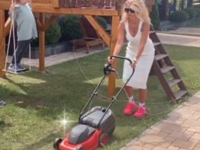 HIT NA MREŽAMA! SNEŽANA BORJAN FUL NAMONTIRANA KOSI TRAVU: Žena fudbalera u beloj suknjici dohvatila kosilicu (FOTO)
