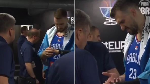 Reprezentacija Srbije pobedila je Portugaliju u drugom meču grupne faze Eurobasketa, ali ono što smo videli na terenu, potom i posle meča zabrinjava. Marko Gudurić je ušao u svlačionicu i žalio se na povredu.