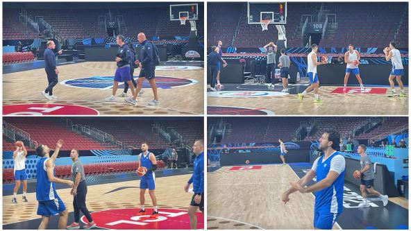 Na bližoj strani bili su Vasa Micić, Marko Gudurić i Nikola Jović koji su na početku vežbali šut za tri poena, pa su onda prešli na izvođenje slobodnih bacanja. Poslednje pripreme za utakmicu koja je svakako najvažnije u ovom delu šampionata i koja može mnogo da znači za narednu fazu.