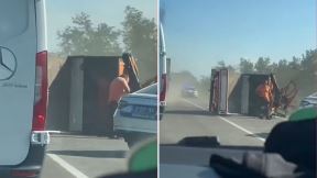 (VIDEO) SUDAR DVA VOZILA, BMW RAZLUPAN! Saobraćajna nesreća na auto-putu Miloš Veliki