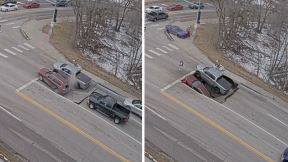 Zemlja ih žive progutala dok su čekali zeleno: Jeziv snimak urušavanja puta, automobili nestali za tren oka (Video)